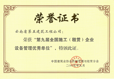 第九屆全國(guó)設(shè)備管理優(yōu)秀單位