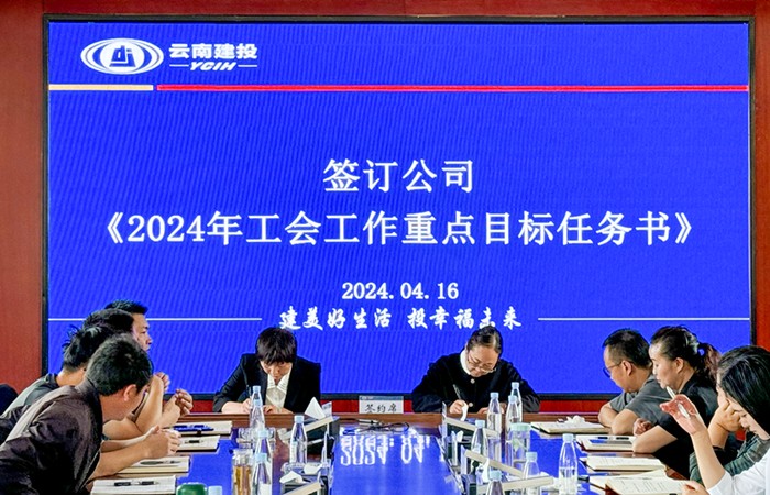 白建萍與基層工會(huì)代表簽訂公司《2024年工會(huì)工作重點(diǎn)目標(biāo)責(zé)任書》,并宣布云南建投第五建設(shè)有限公司群眾性安全生產(chǎn)監(jiān)督管理專項(xiàng)行動(dòng)正式啟動(dòng)。