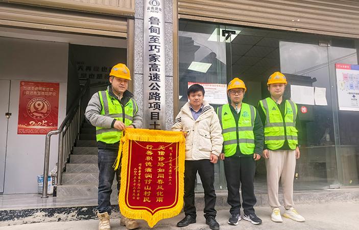 近日,昭通市巧家縣中寨鄉(xiāng)付山村村委會(huì)書記將一面寫有“無償修路如同春風(fēng)化雨,行善積德滋潤付山村民”的錦旗和一封感謝信,專程送至公司市政路橋二部魯?shù)橹燎杉腋咚俟?-4工點(diǎn)項(xiàng)目部,對項(xiàng)目部無償修繕村中道路、切實(shí)改善村民出行條件做出的貢獻(xiàn)表示感謝。