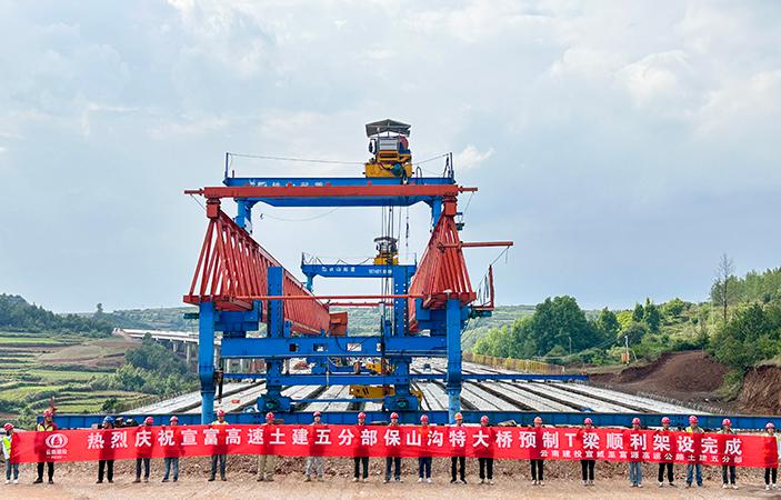 宣富高速公路項目五分部完成保山溝特大橋全部T梁架設工作